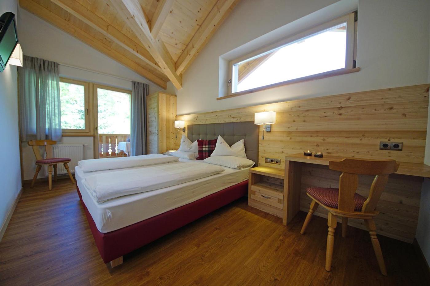 The Puez Odle Park is a 10-minute drive from the property, which also offers a private garage. The TranrĂĽes in Campolongo Golf Club is 3 km away, and a ski bus to the Sella Ronda slopes stops nearby.