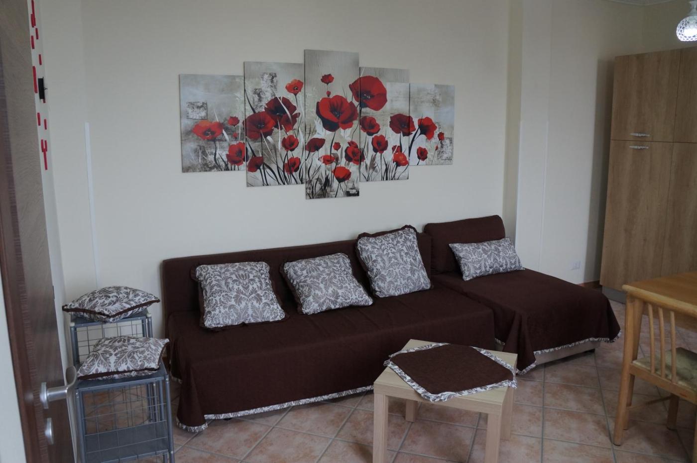 One-Bedroom House. Boasting a private entrance, this air-conditioned holiday home comes with 1 living room, 1 separate bedroom and 1 bathroom with a shower and a bidet. In the well-equipped kitchen, guests will find a stovetop, a refrigerator, kitchenware and an oven. The holiday home has tiled floors, a seating area with a flat-screen TV, a washing machine, a tea and coffee maker as well as sea views. The unit has 3 beds.